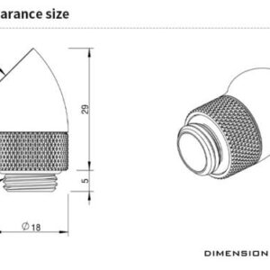 The Barrow G1/4″ Thread 45-Degree Rotary Fitting Adapter allows you to extend your fitting port at a 45 degree angle, allowing larger fittings to be used or allowing connection of other fittings!