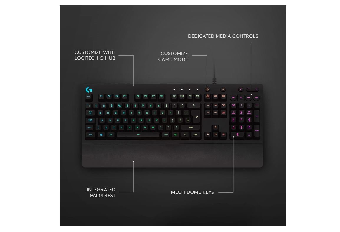The Logitech G213 Prodigy RGB Gaming Keyboard is designed to enhance your gaming experience with its responsive keys, customizable lighting, and durable construction.