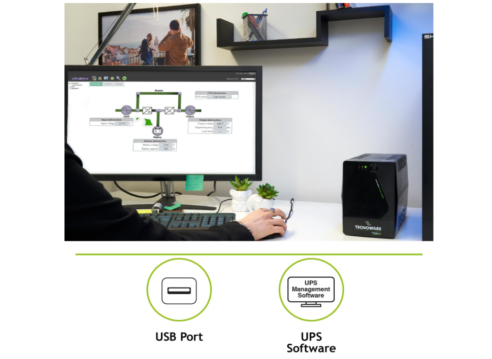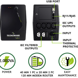 - Output Sockets: 2 UPS Output sockets (Schuko/Italian type)